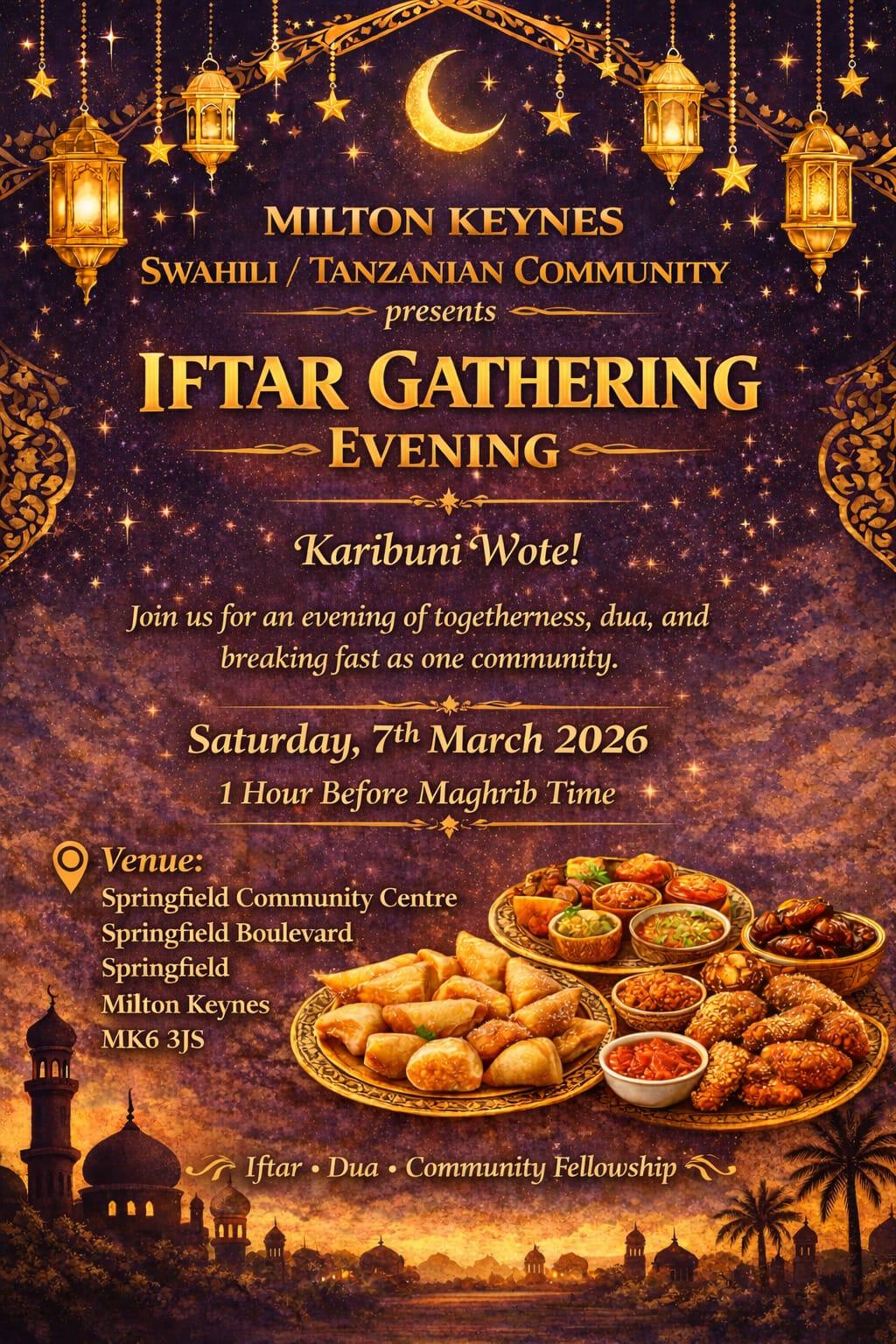 Up comming Event! Join Us for the MK Swahili / Tanzanian Community Iftar Gathering on 7th March 2026